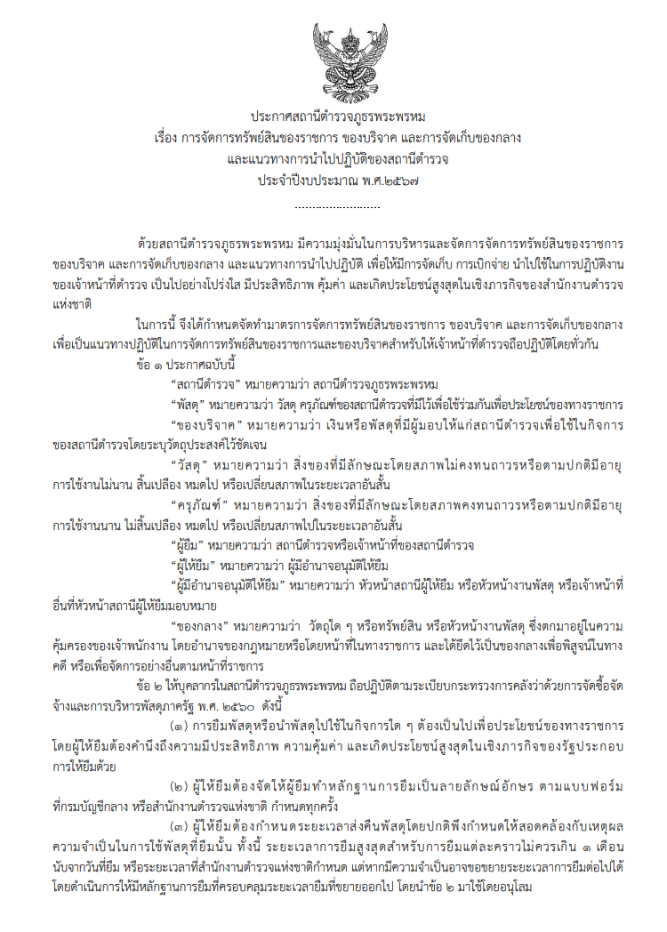การจัดการทรัพย์สินของราชการ ของบริจาค และการจัดเก็บของกลาง และแนวทางการนำไปปฏิบัติของสถานีตำรวจ ประจำปีงบประมาณ พ.ศ.2567