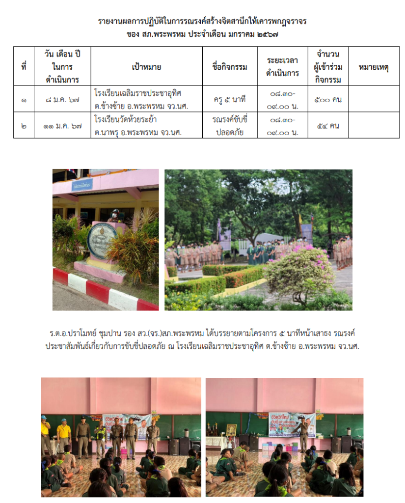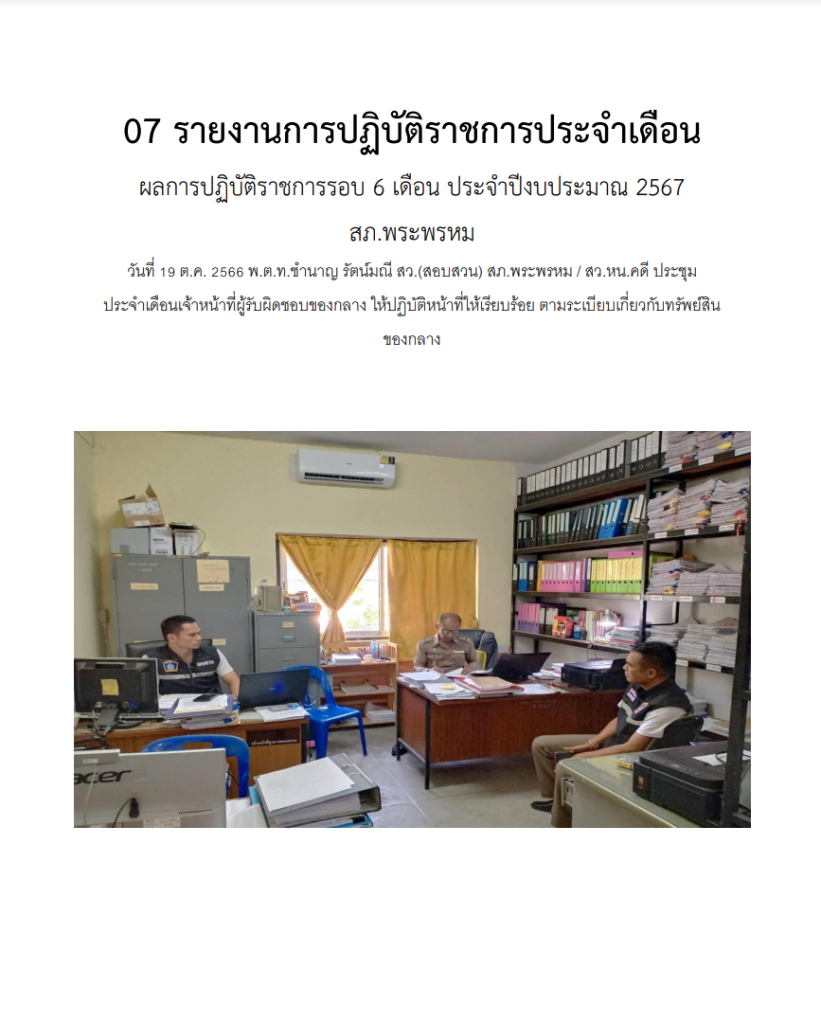 O7 รายงานผลการปฏิบัติราชการประจำเดือน